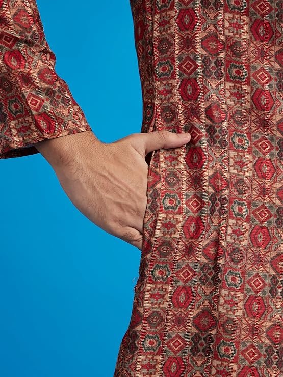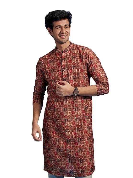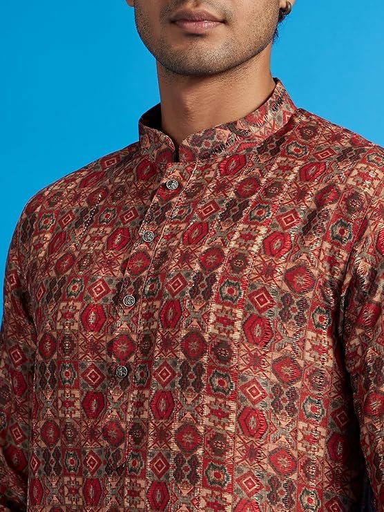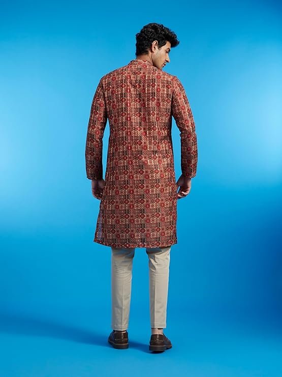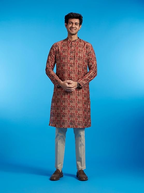- Style: Level up your ethnic game with this rust red aztec printed kurta. The vibrant prints give off those effortlessly cool vibes, while the sleek silhouette keeps things ultra-dapper. Pair with tan leather sandals and a classic watch for that extra swag.