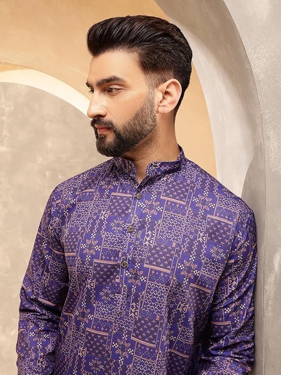 - Collar: Mandarin Collar, Sleeves: Full, Fit type: Regular/ Comfort, Length: Knee length Kurta