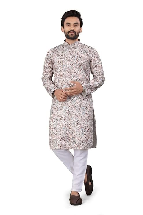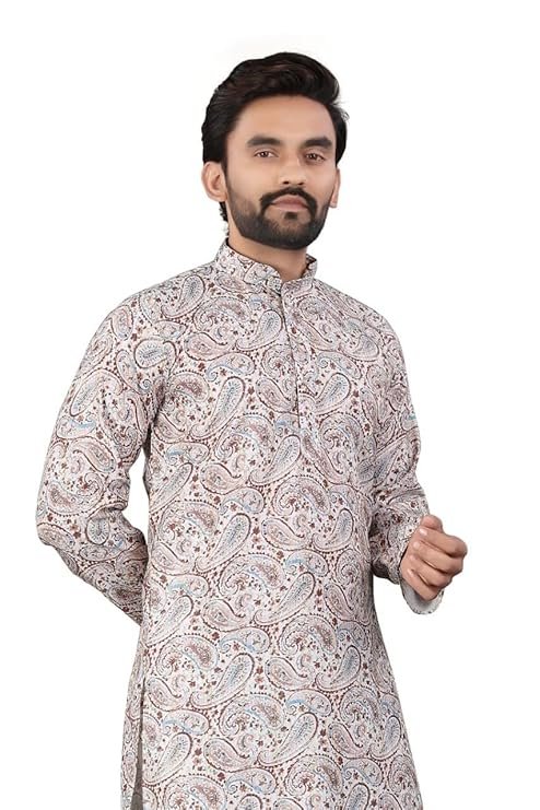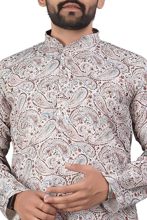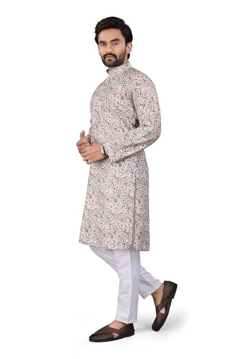 - DESIGN FEATURES: Elegant Mandarin collar kurta crafted from premium Actract fabric with detailed floral and ethnic motifs print throughout