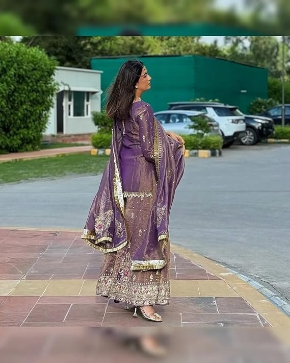 Purple Net Embroidered Sharara Suit with Dupatta