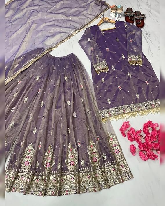 Be the first to review “Purple Net Embroidered Sharara Suit with Dupatta”