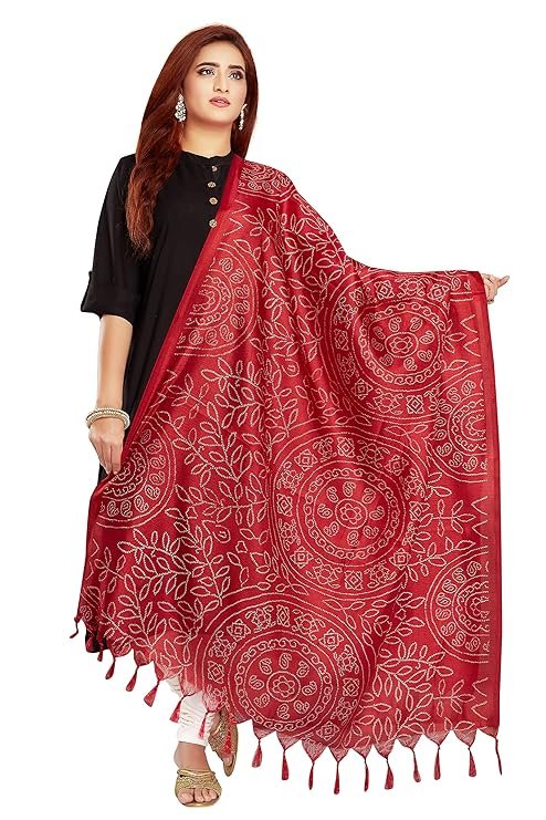 - Rani Saahiba Soft Art Silk Printed Dupatta With Tassels
