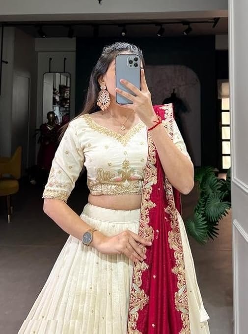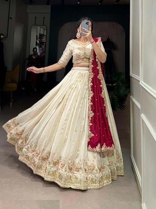 - Festive Outfit: This traditional lehenga set comes with a flowing skirt, fitted choli and matching blouse perfect for festivals and celebrations.