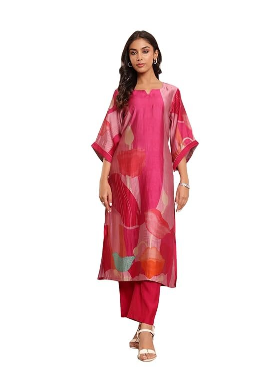 - Fuchsia pink abstract printed straight kurta for a bold and stylish look.