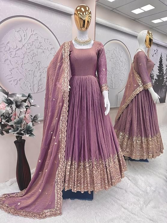 • Perfect for Every Occasion ? Weddings, Festivals & More: Be it a grand wedding, a festive celebration, or an evening party, this Anarkali gown is the ideal outfit to make a statement. Its intricate design and vibrant colors ensure you stand out, capturing everyone?s attention with a look that is both traditional and modern.