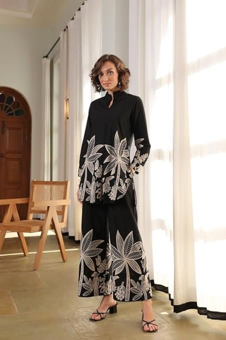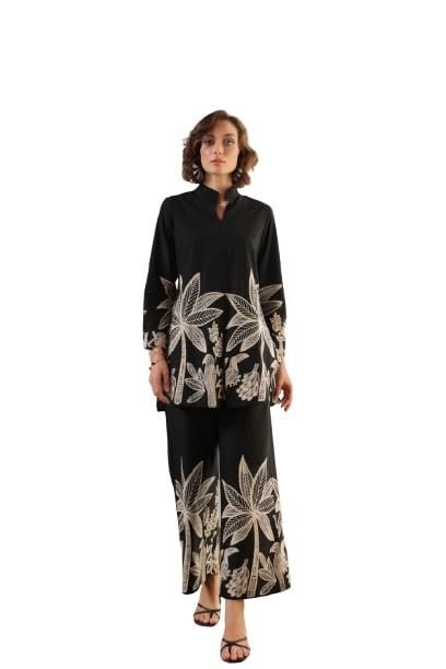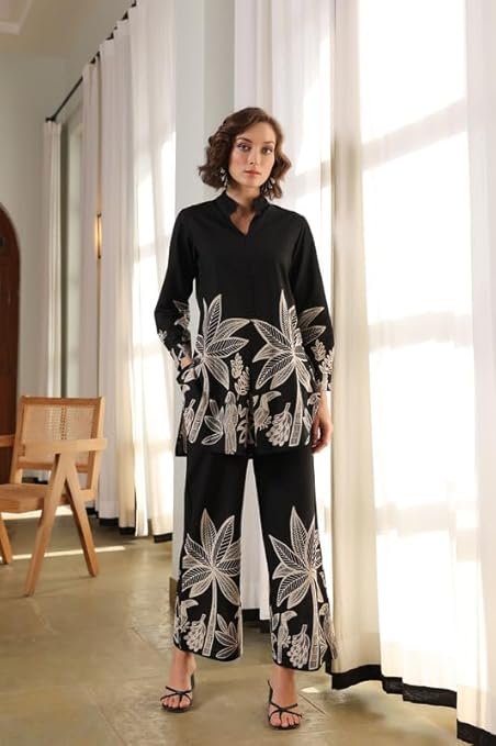 Co-ord set for womanWomen’s Black Printed Pure Cotton Co- Ord Set