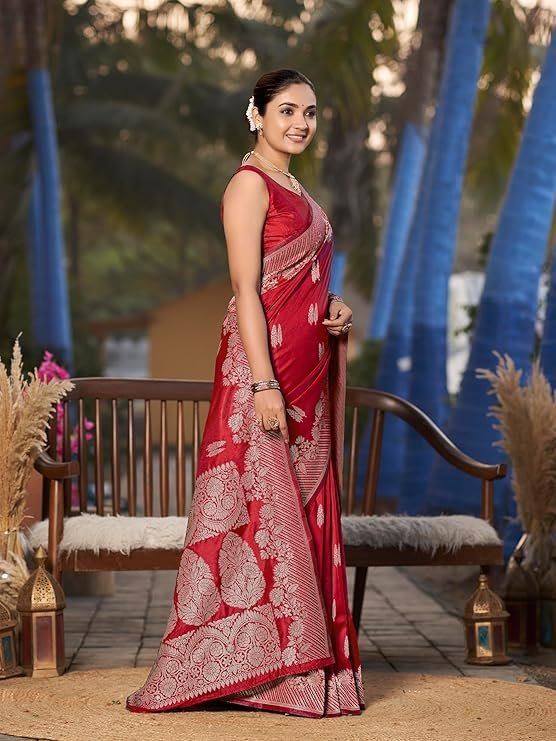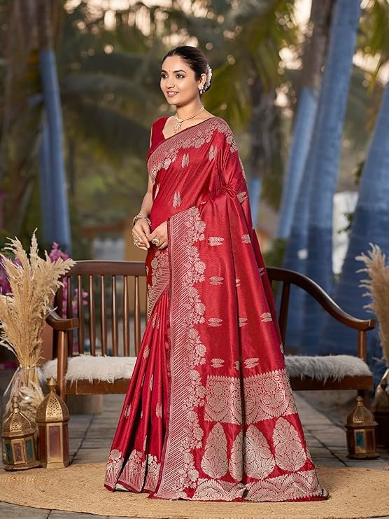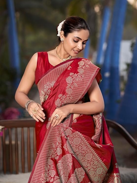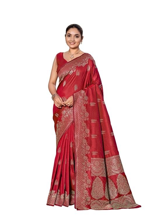 - Saree Color:Red, Blouse Color:Red